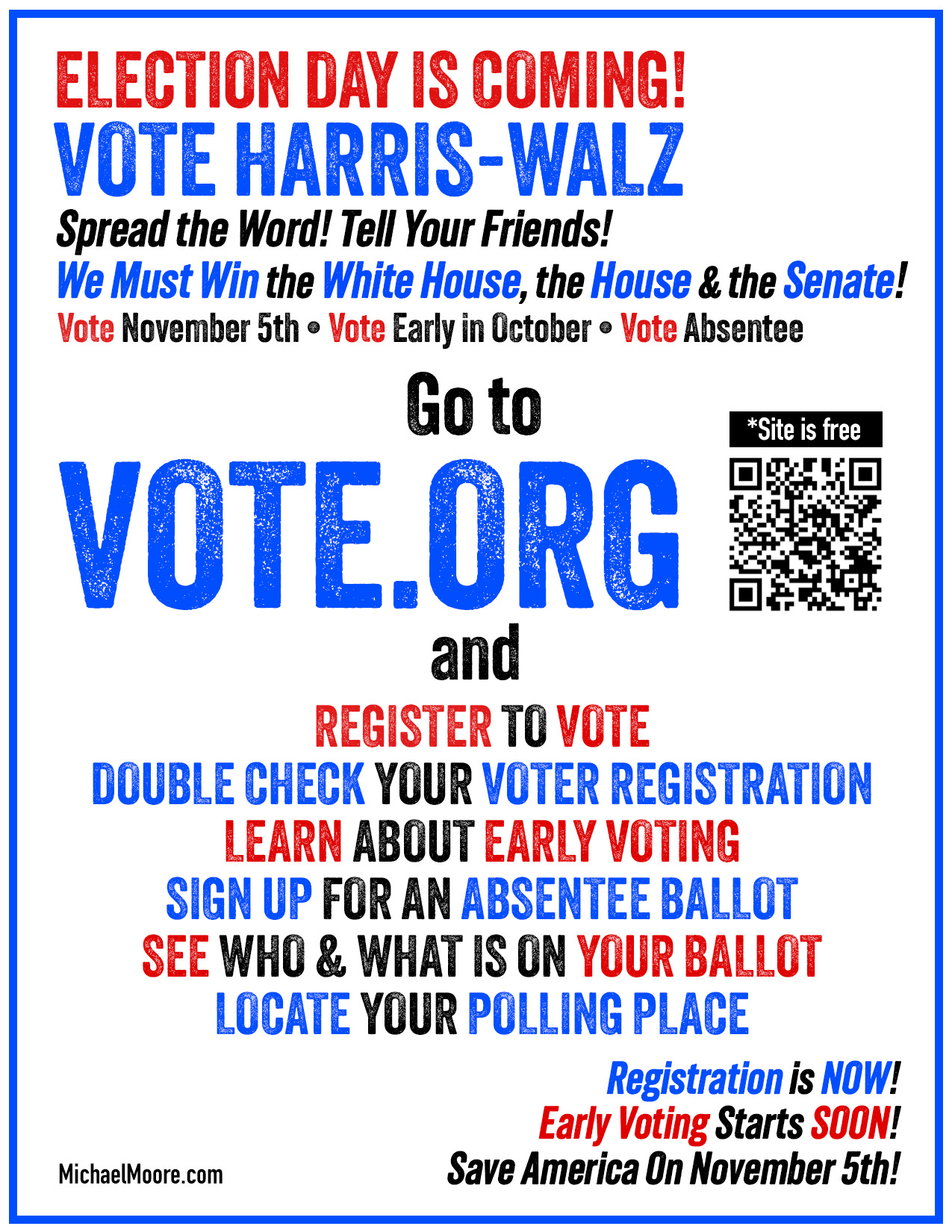 Printing the flyers now! Great idea, and we will “DO SOMETHING” every day until November 5th!