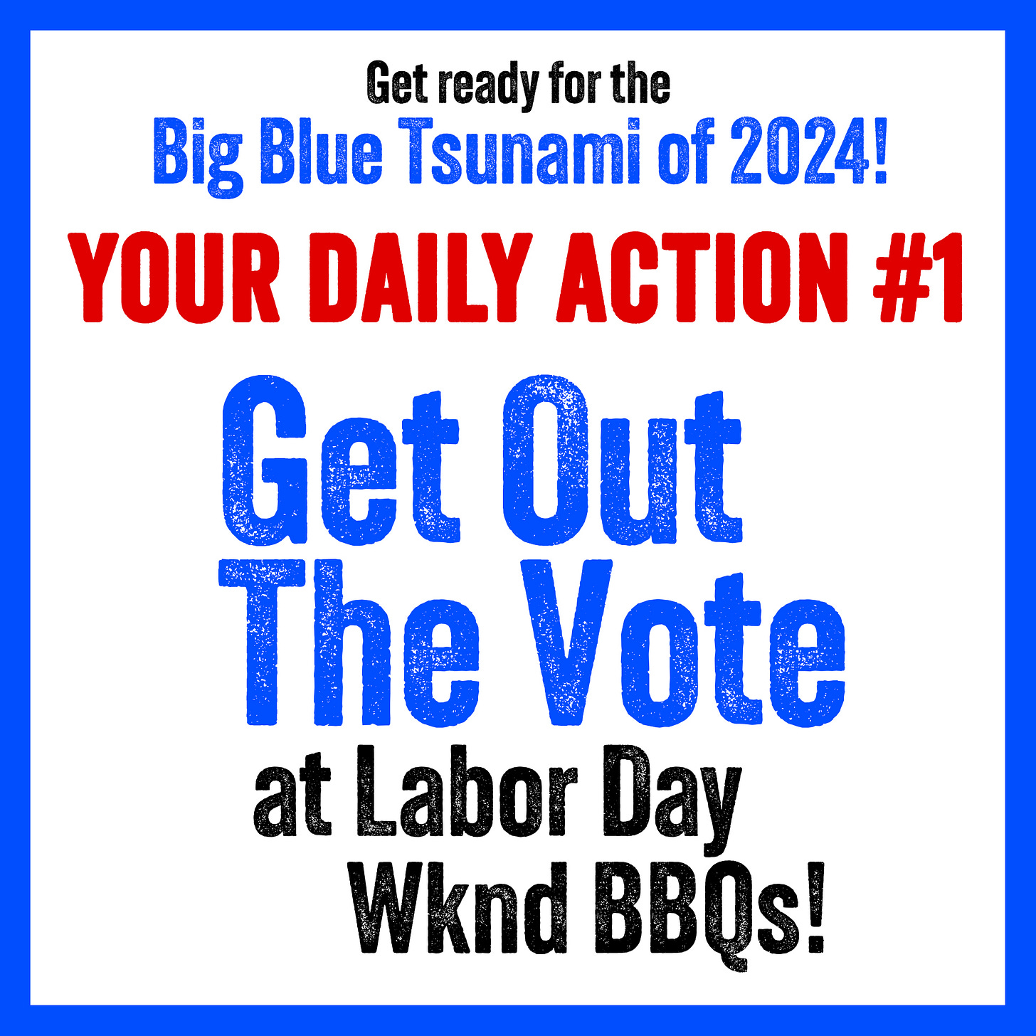 This is the START of our 2024 VICTORY TSUNAMI where we will control the White House, the Senate, the House of Representatives and the State Legislatures! No more messing around with our freedoms, our planet, our paychecks, or our kids. Finally, we will call the shots: Health care/Day care/Elder care FOR ALL! Women’s bodies belong to women! Save our Democracy. Tax the Rich and stop them from gouging us with Inflation.